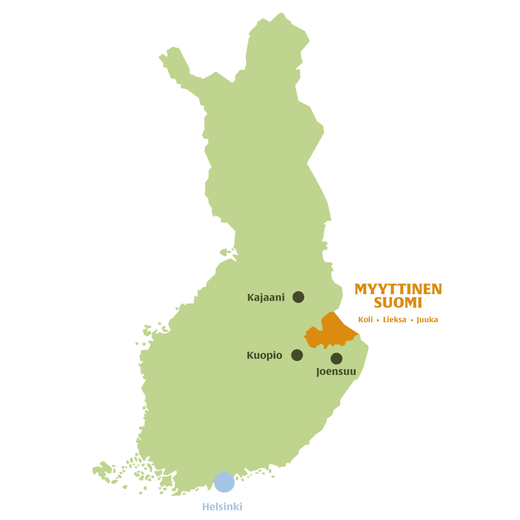 Myyttinen Suomi sijaitsee järkähtämättömänä yhdellä maailman vanhimmista kallioperistä itäisessä Suomessa, Pielisen järven ympärillä Pohjois-Karjalassa. Suomi on kuuluisa onnestaan, sisustaan, luonnostaan ja elämäntaidoistaan. Me pyrimme näyttämään mistä kaikki kumpuaa.